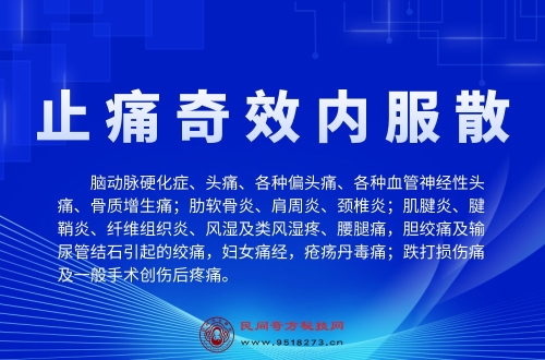 疼痛科的王牌利器治疗颈肩腰腿痛的最强一招民间奇药济苍生 重症顽疾有救星一个传承在民间的治疗各类颈肩腰腿痛神奇秘方 通过多年的总结和观察,发现临床时疼痛患者比较多,几乎天天都有,有时每个营业时钟内都有,证明疼痛是一个常见病、多发病,也证明了疼痛是一块大市场,大蛋糕。临床中如能真正快速彻底的治止住疼痛,治愈
